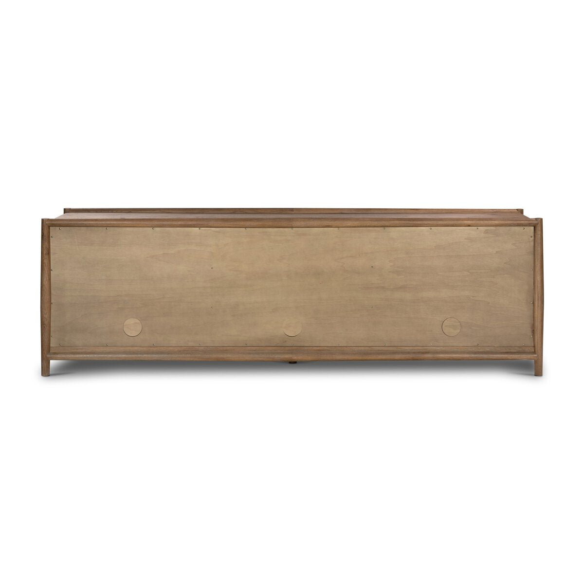 Traditional, reimagined. Made from rustic weathered oak, a six-door sideboard brings generous storage space to the dining room and beyond. Simple cylindrical hardware is finished in an aged bronze.