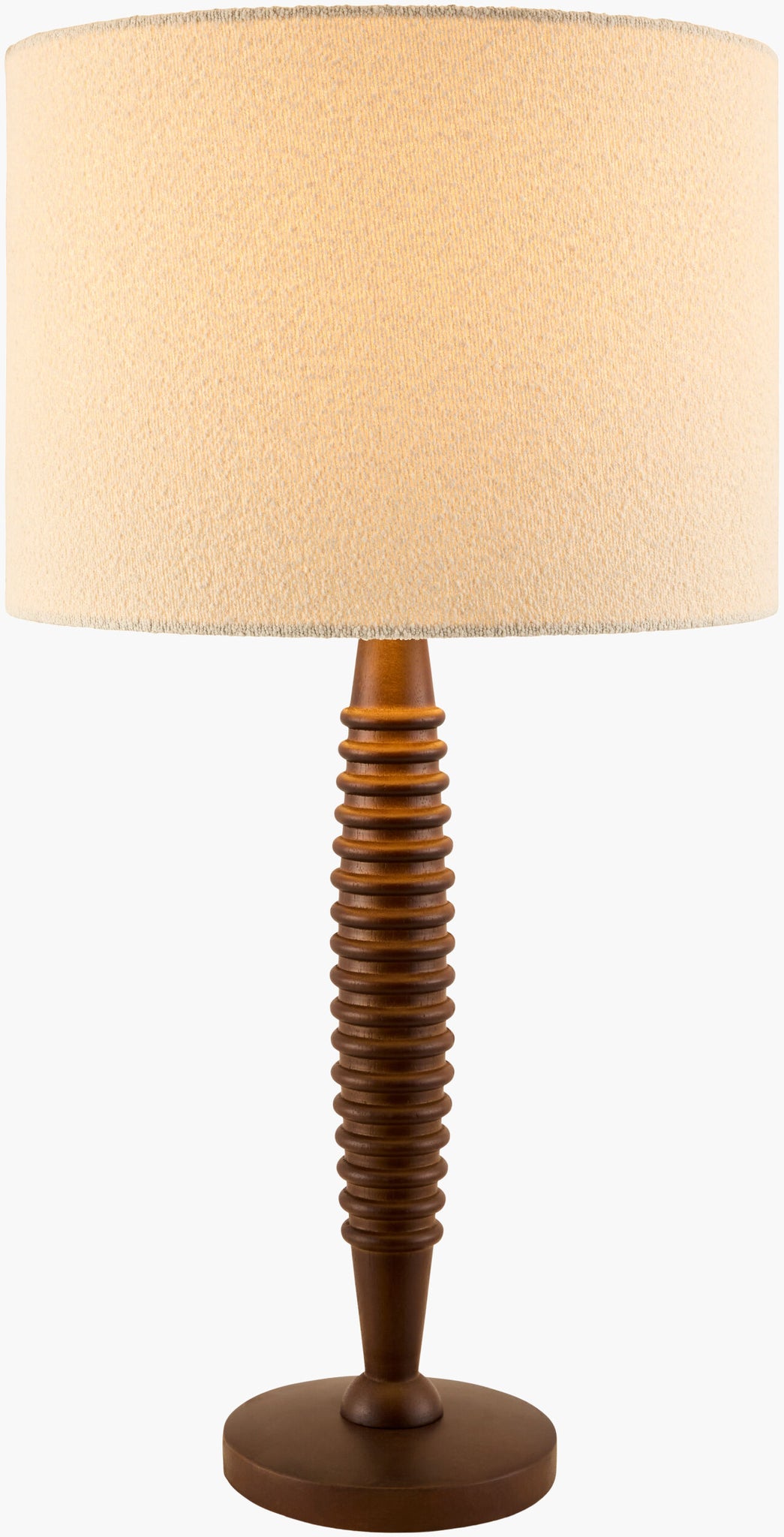 - Materials: Iron & Rubber Wood Base, Linen Shade